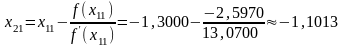 Второе приближение корня определяется по формуле: