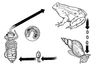 -  прямое заражение окончательного хозяина через наружные покровы или при случайном заглатывании;