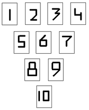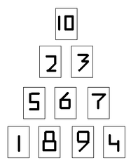 Туземцы предупредили, что вам необходимо будет идти через болото. Для того чтобы продолжить ваш путь вы должны будете научиться перемешаться по кочкам. Передвиньте 3 «кочки» так чтобы треугольник был направлен в другую сторону в другую сторону. (В качестве «кочек» используются листы формата А4 с нанесенными на них цифрами от 1 до 10).