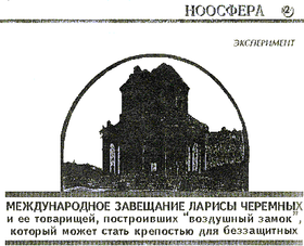 Нина Максимова (газета "Сибирское здоровье сегодня", март 1996 г.): "Международное завещание Ларисы Черемных и её товарищей, построивших "воздушный замок", который может стать "крепостью" для беззащитных".