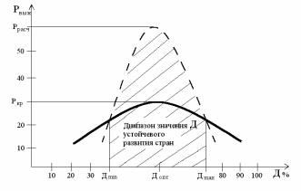 Рис. 3. Вероятность (Рвыж) самосохранения национального социума в условиях открытой экономики стран с риском предпринимательской деятельности более Xкр (см. рис. 1) при различной значимости (долях) государственных рычагов управления народным хозяйством (Д)