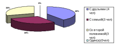 | 4. С кем Вы отдыхаете в данном центре | 4 чел. – 20% | 3 чел. – 15% | 3 чел. – 15% | 0 чел. – 0% | - |