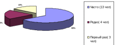 | 1. Как часто вы посещаете Патриаршие сады | 13 чел. -65% | 4 чел. – 20% | 3 чел. – 15% | - | - |