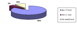 | 6. Имеются ли платные услуги на территории садов | 17 чел. – 85% | 1 чел. – 5% | 2 чел. – 10% | - | - |