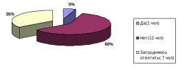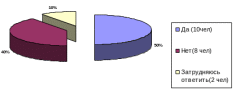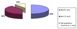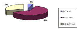 С незаконченным средним образованием ответили 2 человека (10%), 5 человек (25%) – со средне – профессиональным образованием, 6 человек (30%) – с незаконченным высшим образованием, и 7 человек (35%) имеют высшее образование.