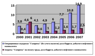 Помимо роста затрат на покупной газ (о чем речь шла выше) главной статьей увеличения издержек является рост расходов на оплату труда. Они выросли с 3,7 млрд. долларов в 2003 году до 9,7 млрд. в 2007 году, а в расчете на баррель добытого нефтяного эквивалента — с менее 1 доллара за баррель в 2003 году до 2,5 доллара в 2007 году.