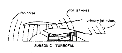 Certainly the most effective of jet noise suppressors has been the turbofan engine, which in effect distributes the power of the exhaust jet over a larger airflow, thus reducing the mean jet velocity.