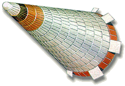 На менее подверженную нагреву верхнюю поверхность устанавливается гибкая теплозащита, а другие поверхности покрыты теплозащитными плитками, изготовленными на основе волокон кварца и выдерживающими температуру до 1300 С. В особо теплонапряженных зонах (в носках фюзеляжа и крыла, где температура достигает 1500 - 1600 С) применен композиционный материал типа углерод-углерод. Этап наиболее интенсивного нагревания ОК сопровождается образованием вокруг него слоя воздушной плазмы, однако конструкция ОК не прогревается к концу полета более чем до 160 С. Каждая из 36000 плиток имеет конкретное место установки, обусловленное теоретическими обводами корпуса ОК. Для снижения тепловых нагрузок выбраны также большие значения радиусов затупления носков крыла и фюзеляжа. Расчетный ресурс конструкции - 100 орбитальных полетов.