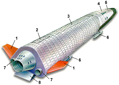 Работы над многоразовым орбитальным кораблем были начаты в 1974 году в рамках подготовки "Комплексной программы НПО "Энергия". Это направление работ было поручено главному конструктору И.Н.Садовскому. Заместителем главного конструктора по орбитальному кораблю был назначен П.В.Цыбин. Центральным вопросом при определении технического облика орбитального корабля был выбор его принципиальной схемы. На начальном этапе рассматривались два варианта схемы: первый - самолетная схема с горизонтальной посадкой и расположением маршевых двигателей второй ступени в хвостовой части; второй - схема "несущий корпус" с вертикальной посадкой. Основное ожидаемое преимущество второго варианта - предполагаемое сокращение сроков разработки за счет использования опыта и заделов по кораблям "Союз". В результате дальнейших исследований была принята самолетная схема с горизонтальной посадкой как наиболее отвечающая требованиям, предъявляемым к многоразовым системам. Проектные исследования, проведенные в направлении оптимизации многоразовой космической системы в целом, определили вариант системы, в котором маршевые двигатели были перенесены на центральный блок II ступени носителя. Энергетическая и конструктивная развязка ракетной системы выведения и орбитального корабля позволила проводить независимую отработку носителя и орбитального корабля, упростила организацию работ и обеспечила одновременную разработку универсальной сверхтяжелой отечественной ракеты-носителя "Энергия". Головным разработчиком орбитального корабля являлось НПО "Энергия", в сфере деятельности которого было создание комплекса бортовых систем и агрегатов для решения задач космического полета, разработка программы полета и логики работы бортовых систем, окончательная сборка корабля и его испытания, увязка наземных комплексов для подготовки и проведения пуска и организация управления полетом. Создание по ТЗ НПО "Энергия" несущей конструкции корабля - его планера, разработка всех средств спуска в атмосфере и посадки, в том числе тепловой защиты и бортовых систем, изготовление и сборка планера, создание наземных средств его подготовки и испытаний, а также воздушная транспортировка планера, корабля и ракетных блоков были поручены специально созданному для этих целей НПО "Молния" и Тушинскому машиностроительному заводу (ТМЗ) МАП. С исключительной энергией и с большим энтузиазмом, опираясь практически на вновь созданный коллектив, вел работы по кораблю "Буран" генеральный директор и главный конструктор НПО "Молния" Г.Е.Лозино-Лозинский. Его ближайшим помощником был первый заместитель генерального директора и главный конструктор Г.П.Дементьев. Большой вклад в создание планера корабля "Буран" внесли директор ТМЗ С.Г.Арутюнов и его заместитель И.К.Зверев, Основные цели создания корабля "Буран" определялись тактико-техническими требованиями на его разработку: