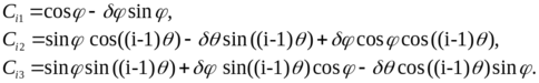 Затем вычисляются проекции приращений углов на оси визирной системы координат (ВСК) j: