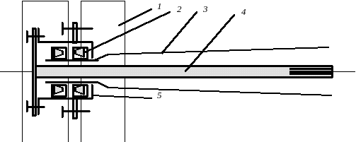 1-колесо; 2-подшипники; 3-кожух полуоси;4- полуось;5-ступица колеса.