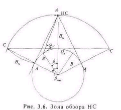 или соответствующей ему дугой АО3, которая называется радиусом зоны обзора