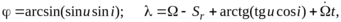 Координаты ГМС (географические широта и долгота) могут быть рассчитаны по формулам: