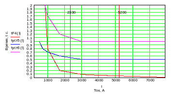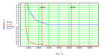 - максимальное значение времени срабатывания предохранителя, установленного непосредственно за участком с РЗ (определяется при двухфазном токе КЗ);