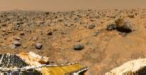 Состав марсианской почвы был окончательно выявлен при исследованиях спускаемых американских аппаратов Викинг-1 и Викинг-2. Красноватый блеск Марса вызван обилием в его поверхностных породах оксида железа III (охры). Кроме железа (14%), в марсианском грунте найдены также кремний (20%), кальций и магний (по 5%), алюминий (3%) и сера (более 3%), которой почти в сто раз больше, чем на Земле.