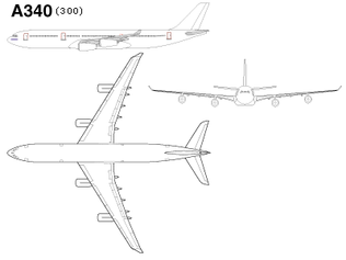 В 1972 г. консорциум "Эрбас Индастри" исследовал проект широкофюзеляжного самолета А300В9, представлявшего собой удлиненный вариант самолета А300В2 на 322 места. В 1973 г. ситуация на мировом рынке выявила потребность в более вместительном самолете, и консорциум проработал проект А300В11 с четырьмя ТРДД. В 1980 г. оба проекта получили соответственно обозначения ТА9 и ТА11 (ТА - twin aisle, т.е. "широкофюзеляжный"). В сентябре 1982 г. консорциум сообщил, что оба новых самолета будут иметь общую конструкцию планера, отличаясь только числом двигателей. В январе 1986 г. проекту ТА9 было присвоено обозначение А330, а проекту ТА11 - обозначение А340. Хотя официально программы обоих самолетов начались в июне 1987 г., первым по графику шел самолет А340, а с интервалом примерно в один год - самолет А330. Уже в ходе разработки самолета А340 консорциум стал предлагать авиакомпаниям два варианта: исходный А340-300 с дальностью полета 12400 км и вариант А340-200 с укороченным фюзеляжем и дальностью полета 13800 км. Первоначально на самолетах А340 предусматривалась установка четырех ТРДД CFM56-5C тягой по 14160 кгс или ТРДД со сверхвысокой степенью двухконтурности "Суперфэн", являвшийся вариантом двигателя V2500. В результате прекращения разработки ТРДД "Суперфэн" двигатели CFM56-5C стали (и остаются до сих пор) единственным типом двигателя на самолете А340.