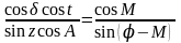 точки наблюдения, зенитное расстояние z и азимут A. Требуется найти склонение светила