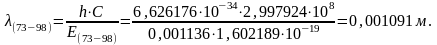 Фотон с аналогичной длиной волны излучится при переходе электрона, например, с 98 на 73 энергетический уровень.