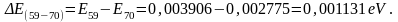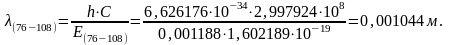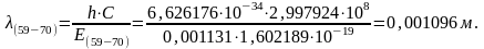 При переходе электрона с 70 на 59 энергетический уровень излучится фотон с аналогичной длиной волны.