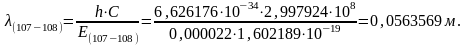 Для установления максимально возможной длины волны фотона, соответствующей реликтовому излучению, найдём разность энергий связи электрона атома водорода, соответствующую 108-му и 107-му энергетическим уровням.