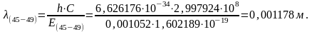 Приведем ещё один пример. Пусть электрон переходит с 49 на 45 энергетический уровень. Энергия фотона, который он излучит при этом, равна