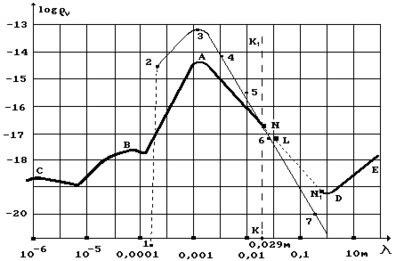 Экспериментальная часть зависимости в интервале DE (рис. 1) соответствует радиодиапазону. Она получается стандартными методами, но физическую суть этого излучения ещё предстоит уточнять.