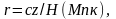 H – постоянная Хаббла (составляет от 50 до 100 км/(с∙Мпк)). Значение постоянной Хаббла характеризует скорость расширения Вселенной в современную эпоху и по порядку величины определяет время, протекшее с начала расширения до сегодняшнего момента. Для многих далёких внегалактических объектов закон Хаббла служит единственно достаточно надёжным способом оценки расстояний. Скорости удаления по красному смещению определяются сравнительно легко, в результате из данных о скорости и расстоянии находят постоянную Хаббла.
