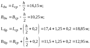 атем, исходя из значения строительного модуля, равного трем, и отношения длины L к ширине В битумохранилища, равного L/B = 1,5, назначаем средние значения длин Lср и Вср.