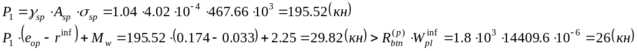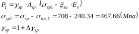 ; суммарная продольная сила равна усилию предварительного обжатия с учётом всех потерь и при