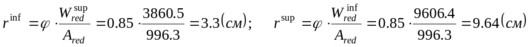 Расстояния от верхней и нижней ядровой точек до центра тяжести приведённого сечения, где