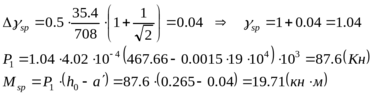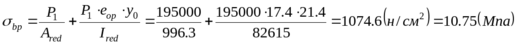 т.к. усилие обжатия Р приложено в центре тяжести площади нижней напрягаемой арматуры;