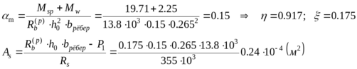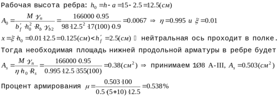 . Расчётное сечение ребра в пролёте является тавровым с полкой в сжатой зоне: