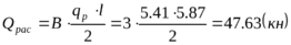 | Постоянная от веса: - рулонного покрытия(6мм) - ц/п стяжки(20мм; =2000) - от утеплителя(базальтоволокнистые плиты 120мм; =250) - от пароизоляции(2 слоя пергамина на мастике 10мм) - от ребристых панелей(25мм) | 100 400 300 100 1350 | 1.2 1.3 1.2 1.2 1.1 | 120 520 360 120 1485 |