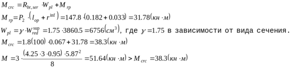 Вычисляем момент, воспринимаемый сечением нормальным к продольной оси элемента, при образовании трещин: