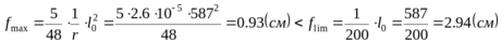 Прогиб определяем от нормативного значения постоянной и длительных нагрузок; предельный прогиб составляет
