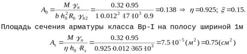 Учитывая на опоре работу поперечных стержней сетки плиты, у которой на 1(м) имеется 5Ø3