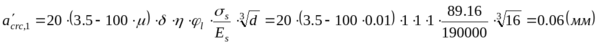 Ширину раскрытия трещин от непродолжительного действия всей нагрузки: