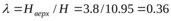 Отношение высоты надкрановой части колонны к её полной высоте: