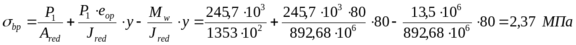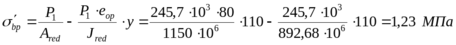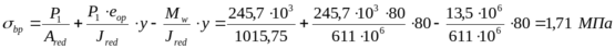 Напряжение на уровне растянутой арматуры (y=eop=80мм) будет равно