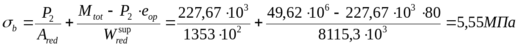 Напряжение на уровне крайнего верхнего волокна (y=h-yred=110мм) будет равно: