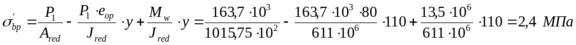 Напряжение на уровне крайнего верхнего волокна (y=h-yred=110мм)будет равно: