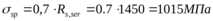 Назначаем величину предварительного напряжения арматуры σsp=1015 МПа и проверяем условие: