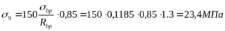 Напряжение на уровне растянутой арматуры (y=eop=80мм) будет равно: