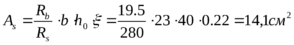 Принимаем бетон м.з. В35 (Rb=17,5Мпа) и арматуру АII (Rsс=280Мпа).
