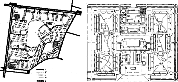 В капиталистическом городе жилой квартал представляет собой лишь территориальное объединение ряда зданий, предназначенных как для жилья, так и для других целей, причем нередко в сочетании, которое ухуд шает условия проживания. В социалистическом городе жилой квартал должен быть организованным комплексом, включающим в себя наряду с жилыми зданиями те элементы обслуживающего характера, связанные с обобществлением быта, которые должны быть приближены к жилью.