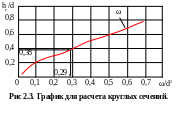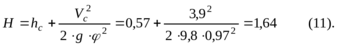 где ωс — площадь сжатого сечения в трубе, м2, который определяется из рис. I [2] стр. 13 из соотношения hc/d = 0,38. По этому графику видно, что ω/d2 = 0,29. Следовательно, ωс = 0,65 и по формуле (12):