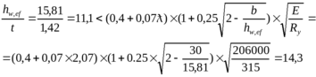 где hw,ef = h – t – R= 194,3 - 14,2 - 22 = 158,1мм = 15,81 см