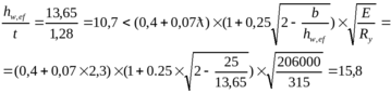 где hw,ef = h – t – R= 16,93 – 1,28 – 2,0 = 13,65