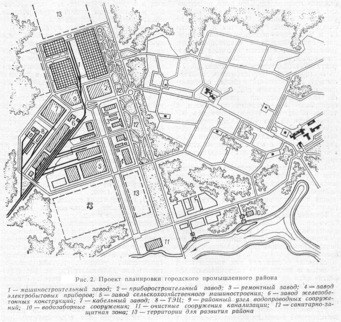 Главным условием при решении планировочной структуры городского промышленного района является предварительная планировка его территории, устанавливающая основы планировочной организации, последующего планомерного размещения промышленных предприятий и других производственных объектов с учетом территориального их объединения в группы и возможности всестороннего кооперирования.
