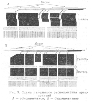 Основными структурными элементами планировки городского промышленного района являются панели, предназначенные для размещения, как правило, одного ряда предприятий, и блоки, на которые панели разделяются внутрирайонными проездами рис. З.